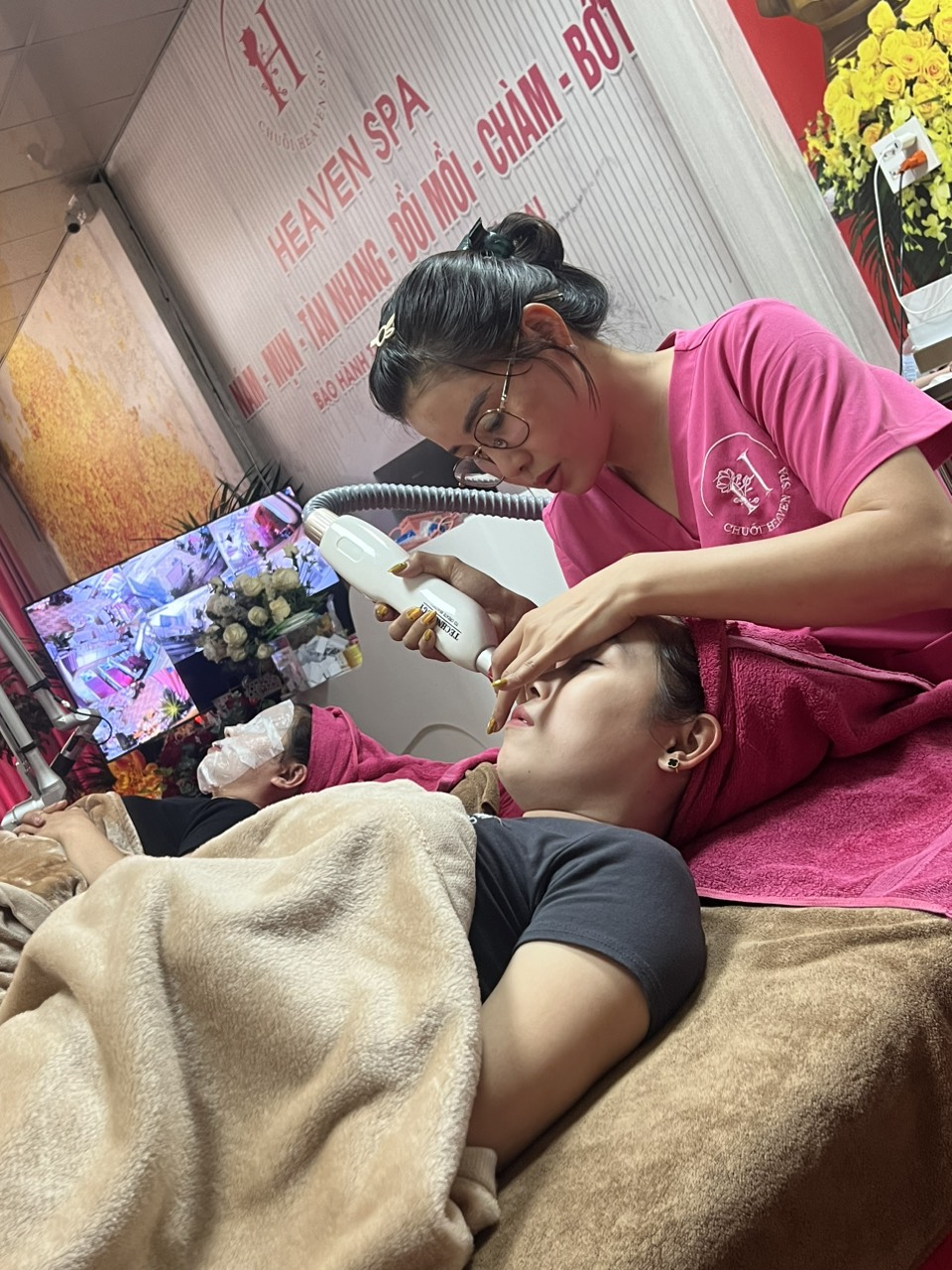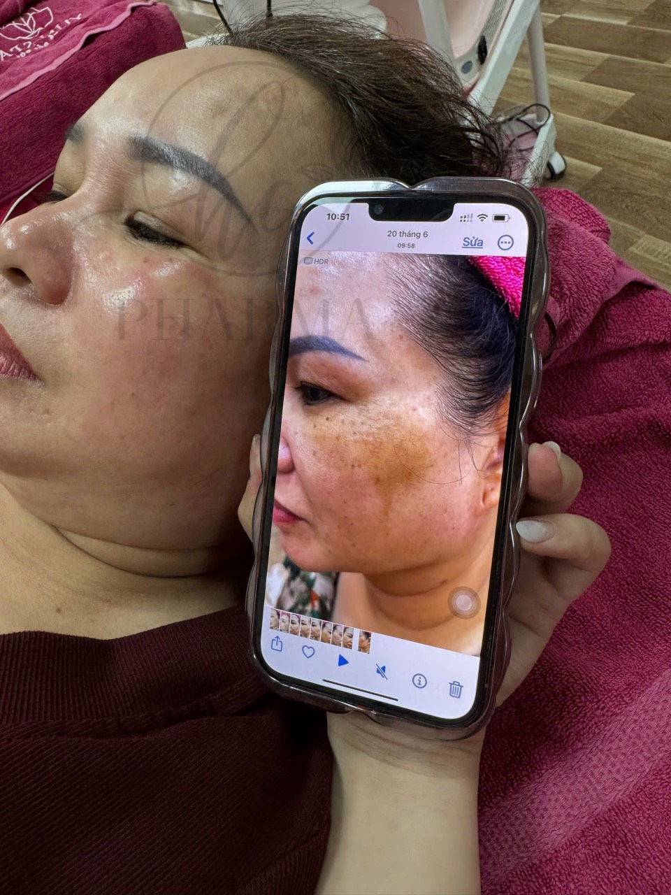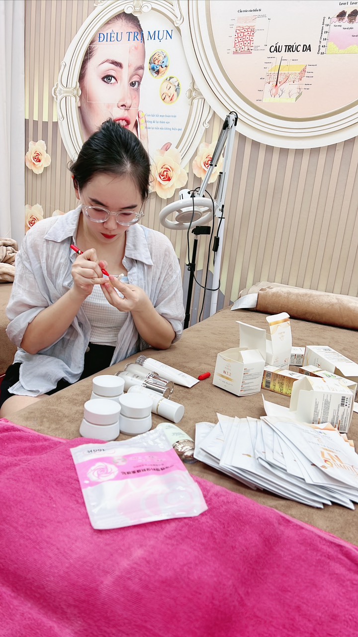Khách hàng trải nghiệm quá trình chăm sóc da cùng HC PHARMA