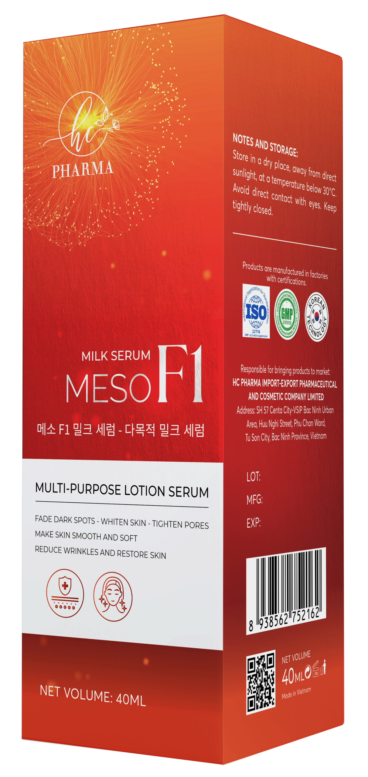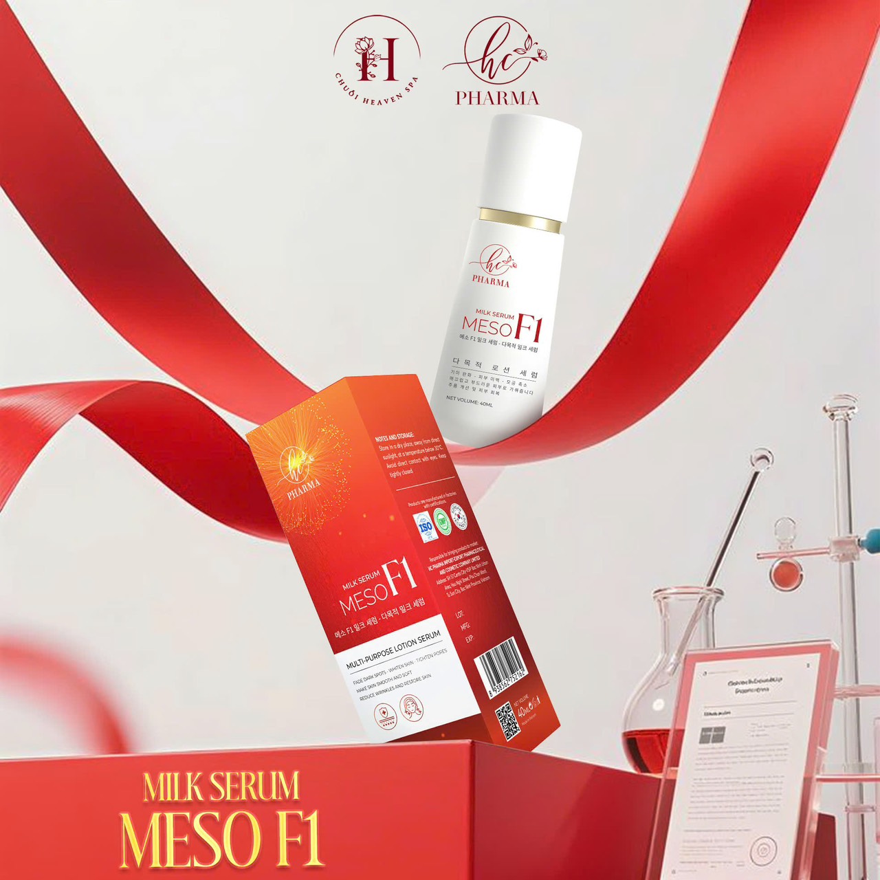 Sau bước rửa mặt và toner, lấy 2–3 giọt SERUM SỮA MESO F1, thoa đều khắp mặt và cổ.